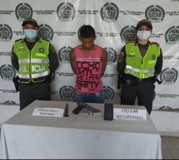 Andrés Salazar Arrieta fue capturado por la Policía cuando asaltaba con un arma traumática a un ciudadano para despojarlo de una motocicleta y un celular, en la vía que comunica los municipios de La Paz y San Diego, Cesar.