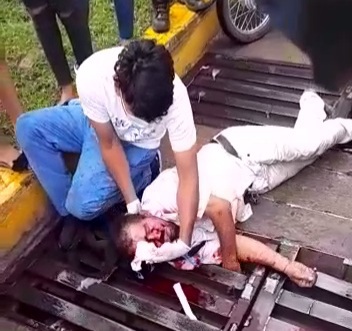 En la caída el hombre perdió el conocimiento y sufrió una delicada lesión en los labios de la boca, al golpear el rostro de frente contra la estructura de hierro instalada en la entrada a dicho sector.