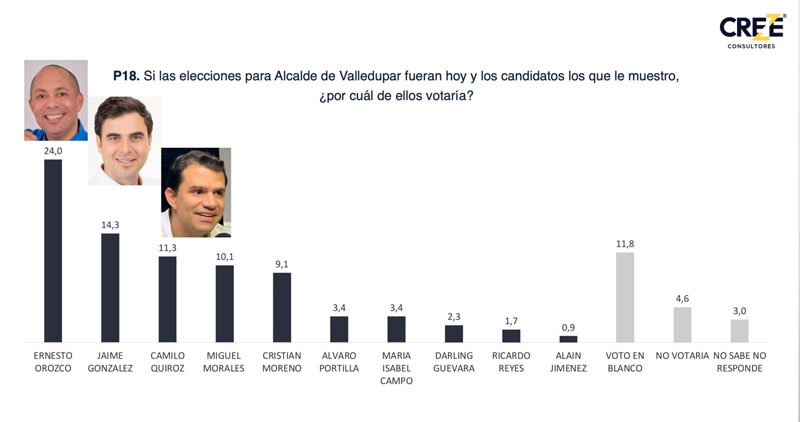Los datos obtenidos mediante la encuesta permiten apreciar las tendencias de voto en la contienda electoral por la alcaldía de Valledupar.