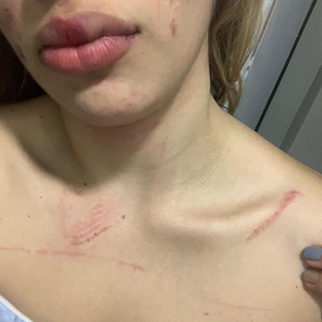 Fernanda le contó a la Fiscalía que “él comenzó a reclamarme por unos mensajes; en medio de su ira empezó a ahorcarme diciendo que me mataría porque si no iba estar con él no estaría con nadie, porque yo le pertenecía. Logré soltarme y tomé el celular para llamar a la Policía, eso lo enfureció más y empezó a pegarme puños en el rostro y la cabeza causándome lesiones en la región cervical, la boca, los dientes, la nariz y los ojos; además de golpes en la espalda y los brazos”.