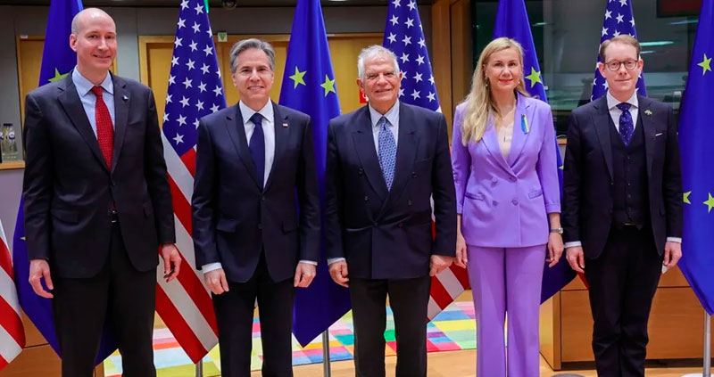 “Las relaciones de EEUU y la UE nunca han sido más fuertes”, subrayó Blinken, que agradeció a la UE la ayuda financiera, militar y humanitaria que aporta a Ucrania y las sanciones internacionales que ambos bloques han decretado contra la Rusia de Vladímir Putin.