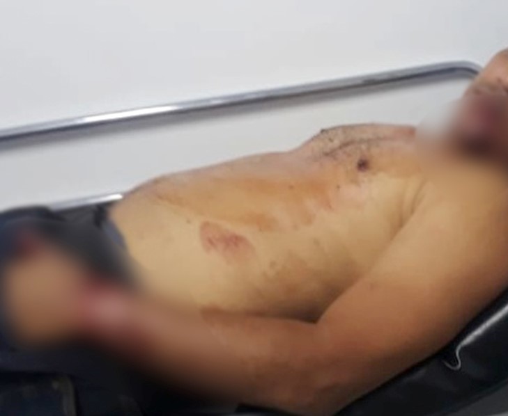 Carlos, fue remitido a un centro asistencial con las cinco heridas superficiales en el tórax y una de sus piernas.