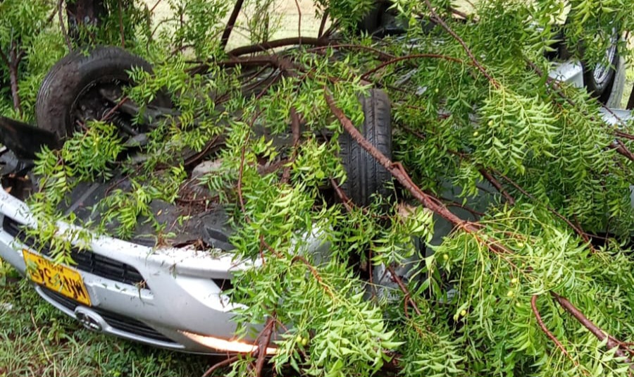 Un vehículo Toyota Corolla, en el que viajaban dos adultos y un menor de edad, terminó fuera de la carretera en un suceso que, a primera vista, presagiaba graves consecuencias.